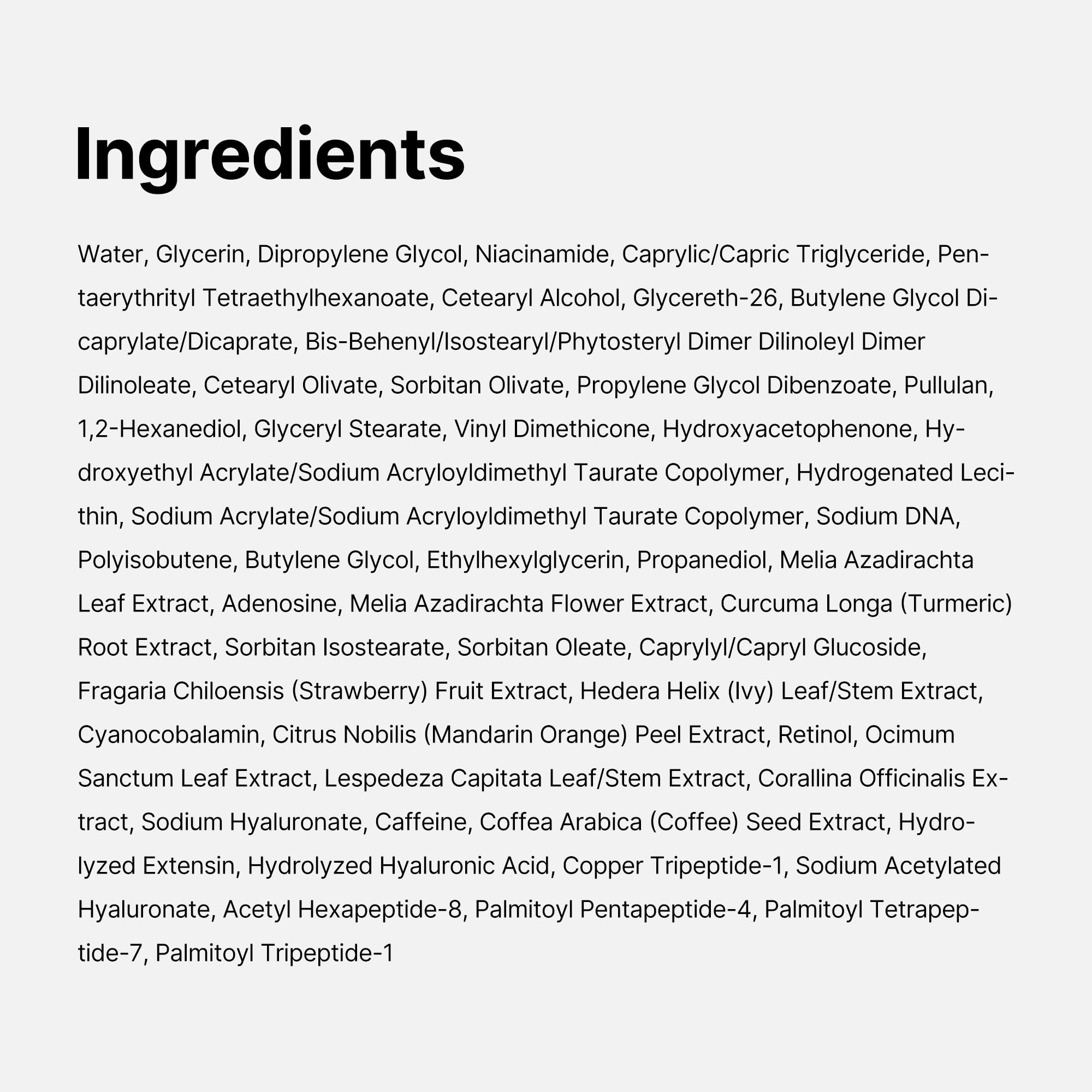 - Salmon DNA PDRN : Innovative ingredient that helps reduce the appearance of darkened areas and improves dull eye area. Highly concentrated Salmon DNA PDRN helps improve uneven skin tone and texture of eye area. *The above information pertains only to the characters of the raw materials
