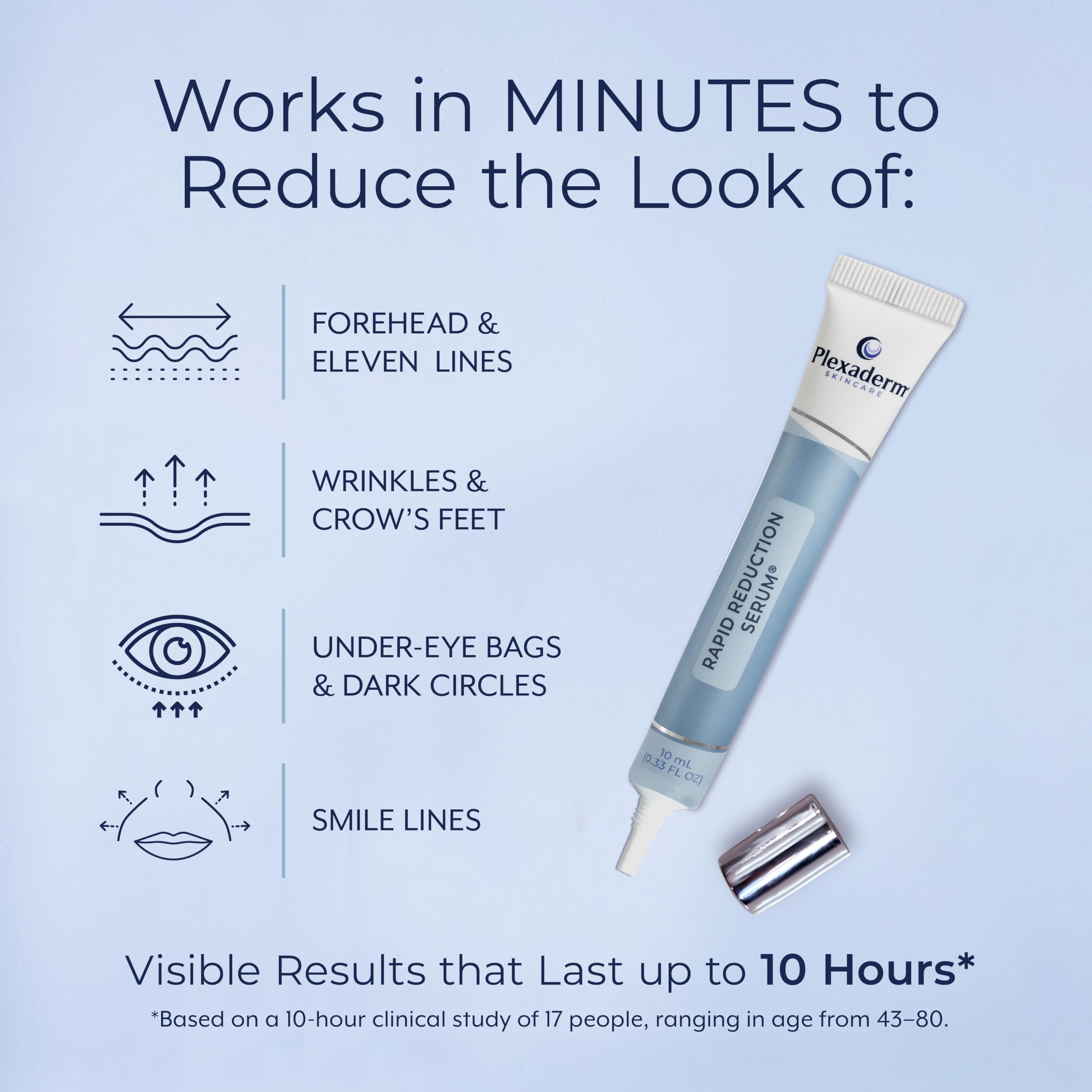 - 10 HOURS OF ONGOING BEAUTY – Our advanced skin serum was clinically tested and shows that results can last for up to 10 hours. Apply to clean and dry skin. Allow Plexaderm Rapid Reduction Serum to set and dry for 10 minutes after application. As it sets, avoid moving the areas where you’ve applied Plexaderm so that you can achieve optimal results.