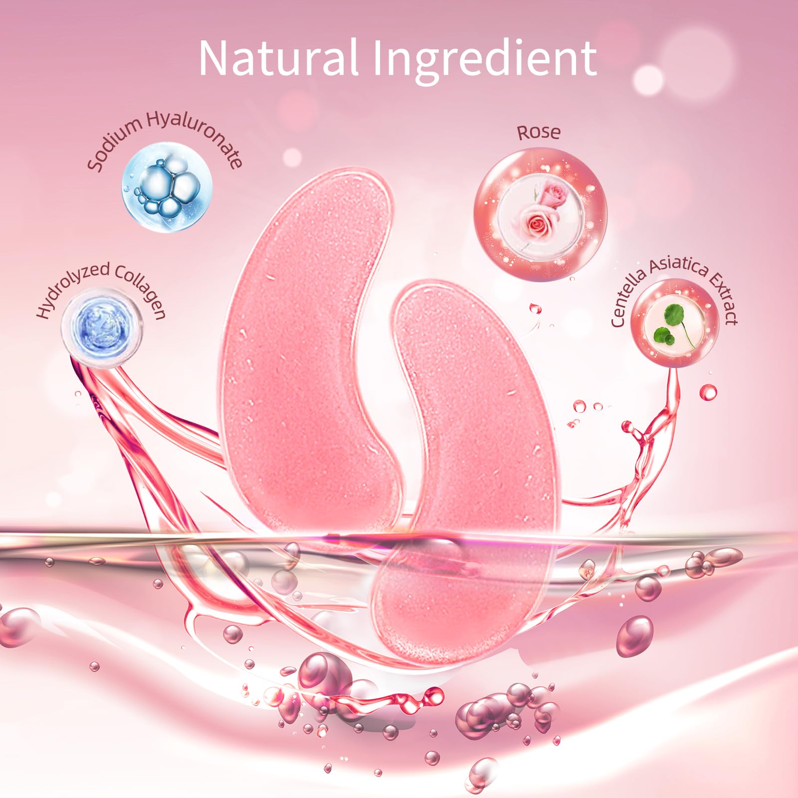 - 【Natural Ingredients】: Our Rose under eye patches for eyes use with natural ingredients which main including Aqua, Glycerin, Rose Extract, Collagen, Niacinamide, Furcellaria Lumbricalis Extract, Aloe Barbadens is Extract, Glycyrrhiza Glabra Extract, help promote blood circulation to remove dark circle. The under eye patches through clinically tested by our researcher, continuous use can effectively reduces the appearance of dark circles and puffiness.